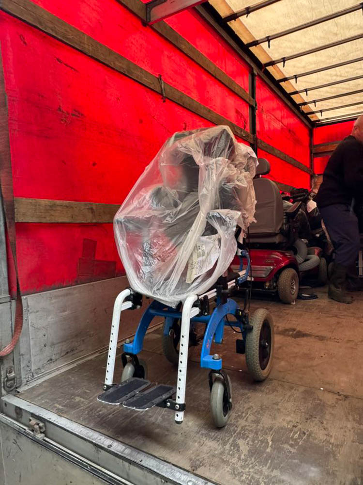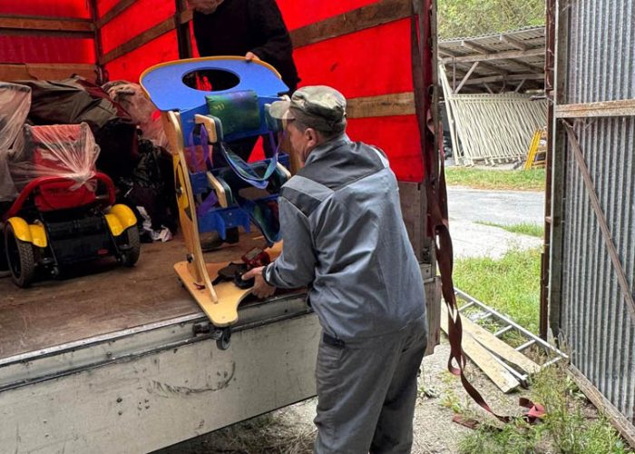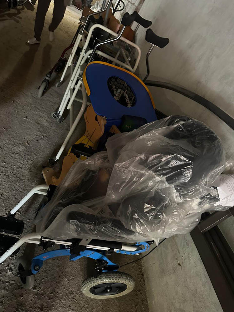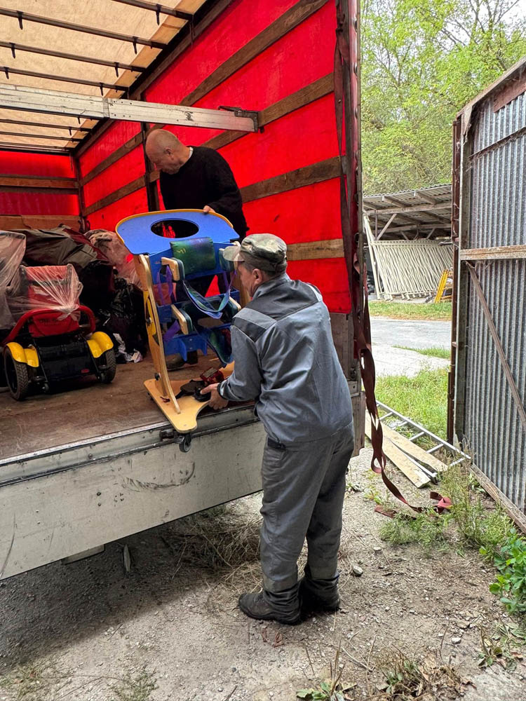 Асоціація українських волонтерів в Італії «Мрія» передали інвалідні візки для дітей з порушеннями опорно-рухового апарату, а також одяг і взуття для дітей та дорослих.